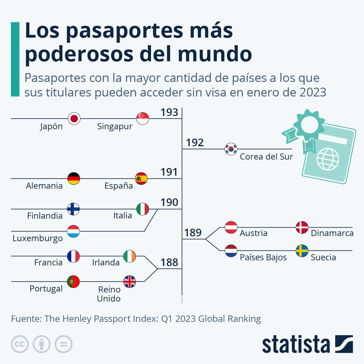 Los ciudadanos de Japón y Singapur son las personas del mundo que pueden acceder a más destinos sin necesidad de un visado previo, gracias a que poseen los pasaportes más poderosos, de acuerdo al Índice de Pasaportes Henley, elaborado por la consultora Henley & Partners. La siguiente infografía de Statista muestra los 16 países con los documentos de viajes que más fronteras abren.